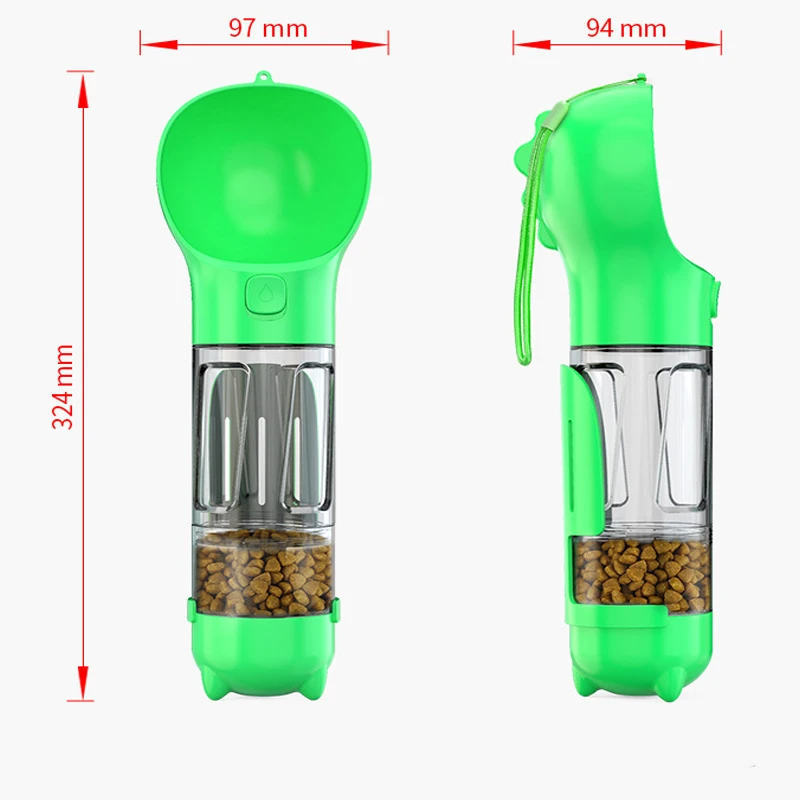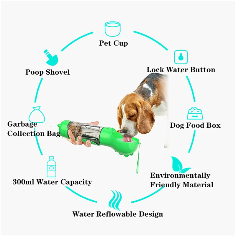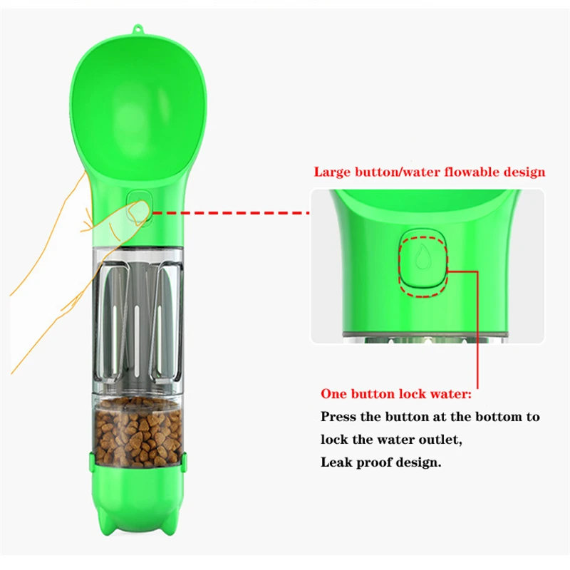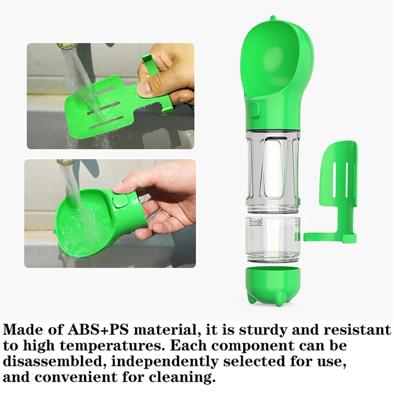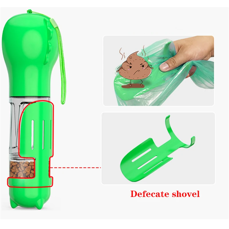 1.Quick and convenient hand operation, 4 and 1 Water Feeder+Food Feeder + Rubbish Bag + Poo shovel.